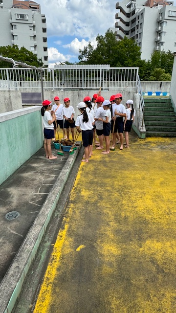 今日は、来週から始まるプール指導のために、5年生がプール掃除をしてくれました。