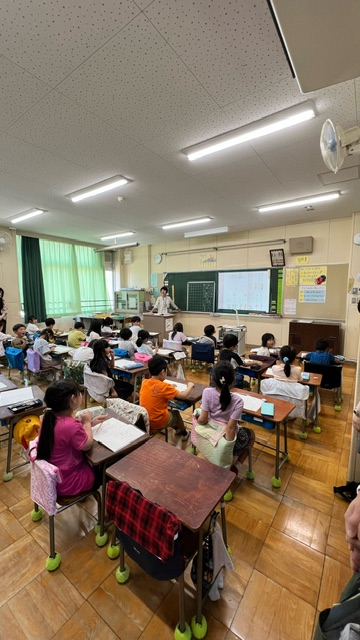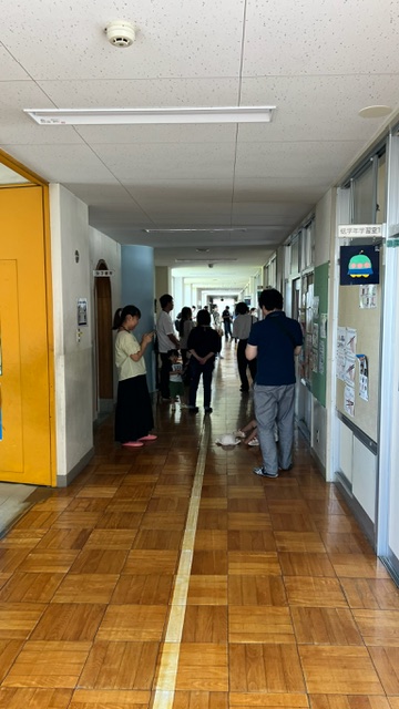 教室内は、保護者の皆様でいっぱいでした。廊下でも、たくさんの保護者の皆様に見守られています。