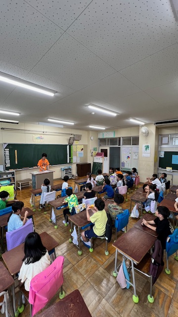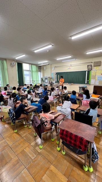 1年生は、一人ひとりが朝のあいさつをしていました。一人ずつ、朝の健康状態を伝えます。