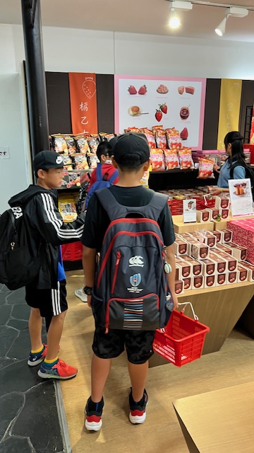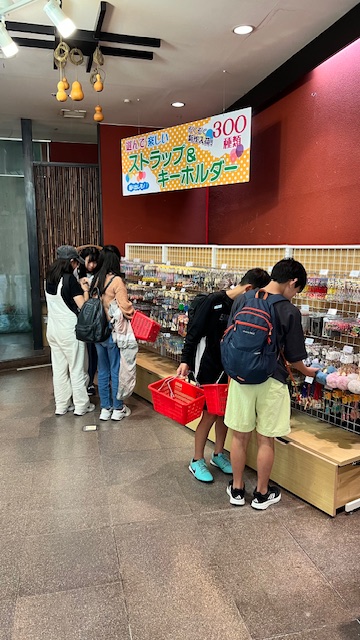 たくさんのお土産を前に、どれにしようか…と、お土産を渡したい人の顔と、予算を考えながら一生懸命考えています。