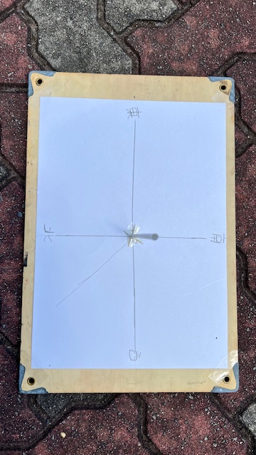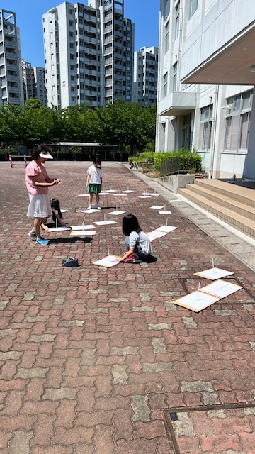 画用紙にストローを立てた物を使って、太陽の動きを確かめています。