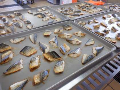 *さばは、さっぱりと大根おろしのソースをかけて食べます。魚が焼き上がったところ・・・写真2枚目