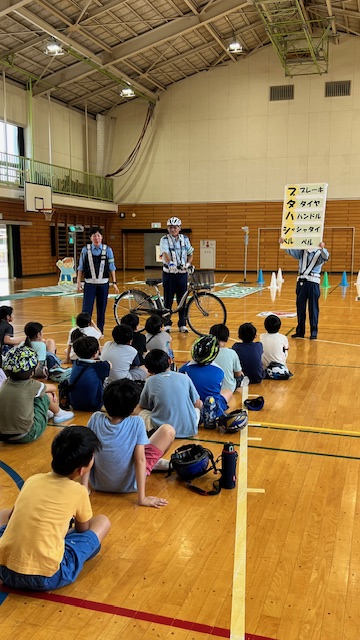 自転車に乗る前の準備として、ヘルメットをしっかり被りましょう!
