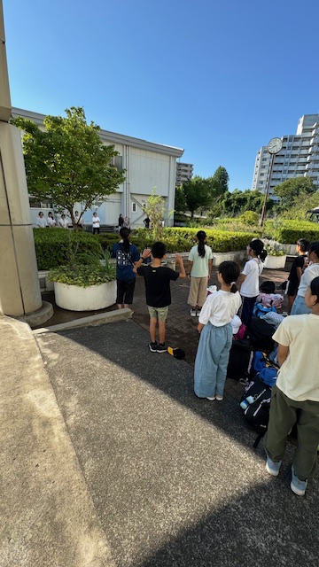 お見送りのためにきてくださった保護者の皆さんに、「いってきます!!」