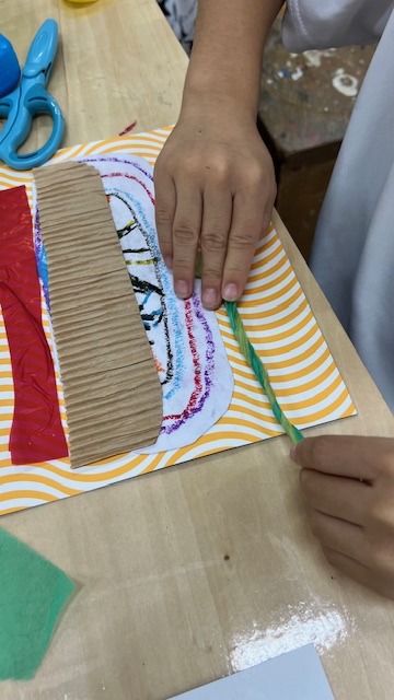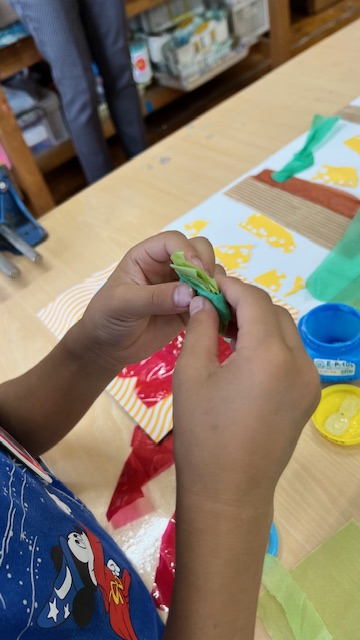 折りながら重ねたり、2色を棒状に捻ったりしています。