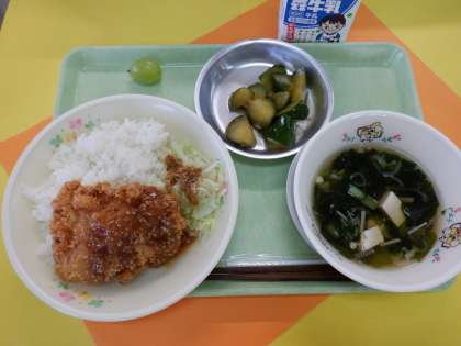 *明日はいよいよ下柚木小の運動会です。今日は、運動会がんばれ献立です!