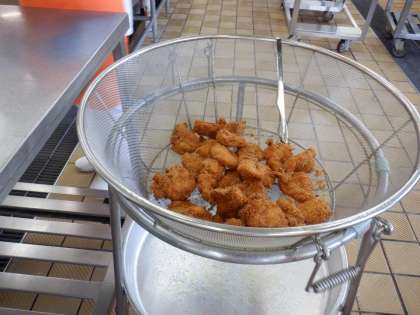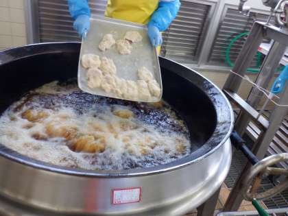 1クラス分ずつチキンカツを上げているところ・・・写真2枚目