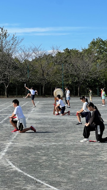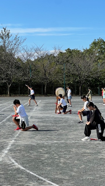 白組赤組応援団の合同練習です。