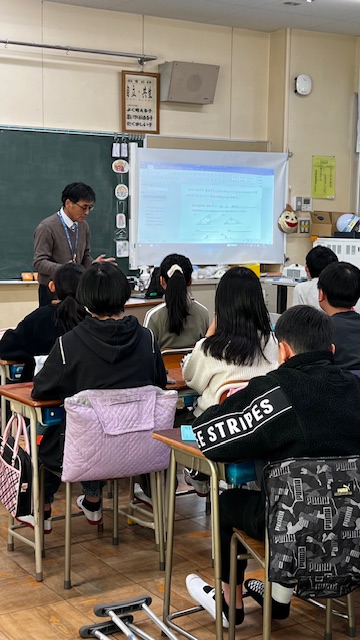 3校時に、宮上中学校の校長先生が出前授業に来てくださいました。