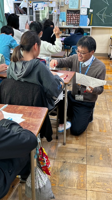 最初に見た星型の図形から何が見えるか?の質問に、「星」「三角形」「五角形」「キツネ!」と答えていましたが、この段階では、「凹四角形」「ねじれ四角形」がたくさん見えるようになりました。