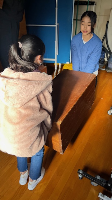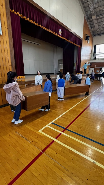 お互いに声をかけ合って、けがのないように丁寧に運びます。