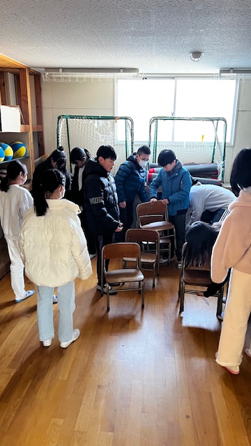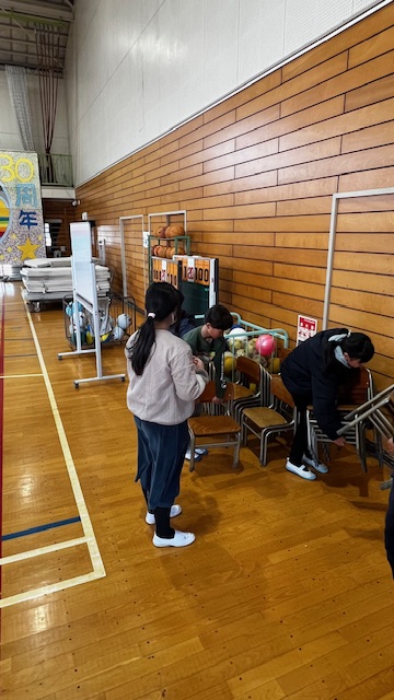 体育倉庫から観賞時使用するマットを出し、整頓します。