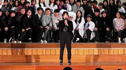代表児童(6年生)が、発表会に向けた思いや後輩たちへの願い、そしてあと少しの学校生活についての思いを伝えました。