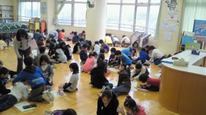 5校時、図書室で「地域安全マップ」の活動を行いました。