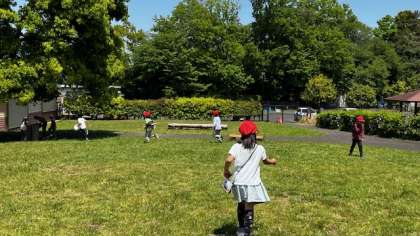 お弁当、おやつと食べ終わって、「ごちそうさま」をして片付けた人から遊びます。