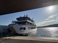 宿泊場所では、夕食後にナイトクルージングをしました。ライトアップされた厳島神社の...