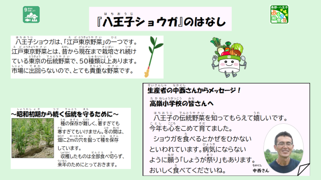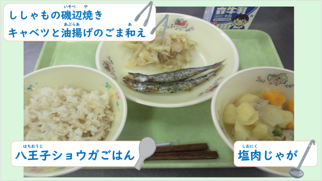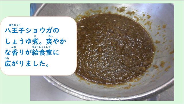 今日の給食は「江戸東京野菜」のひとつ「八王子ショウガ」を使った「八王子ショウガごはん」です。