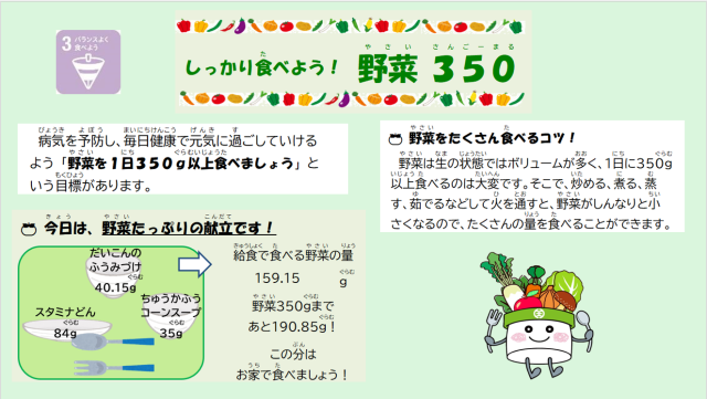 野菜をたっぷり使った献立を、もりもり食べましょう!
