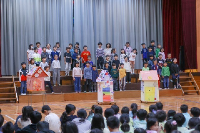 学年ごとに作品を使ったパフォーマンスを披露しました。