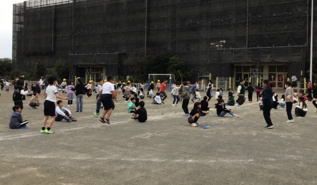 朝の集会で、「なわとびオリンピック」がありました。