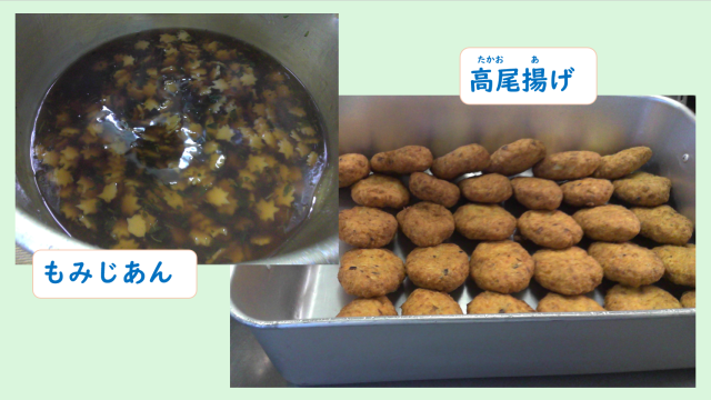 高尾山の紅葉をイメージした「高尾揚げ もみじあんかけ」、高尾山の豊かな自然をイメージした「翠靄汁」です。