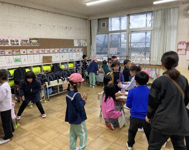 今日は、近隣の保育園の年長さんたちと本校の1年生が交流会を行いました。