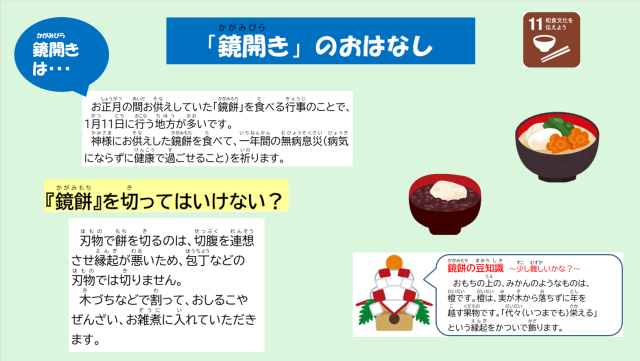 今日から3学期の給食が始まりましたね。今日は「鏡開き」にちなんだ給食です。