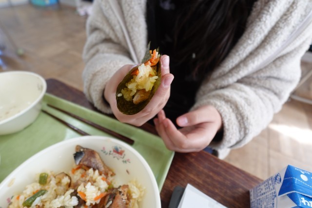 今日の給食は「セルフ恵方巻」