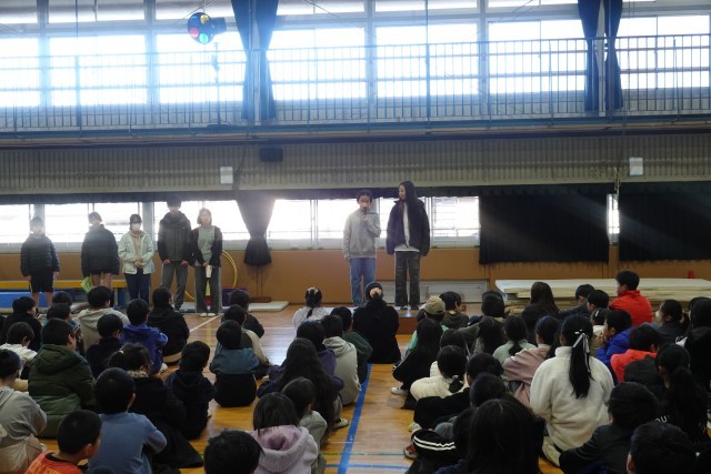 集会では、6年生の苦労や頑張りが伝えられ、下級生から拍手がおくられました。
