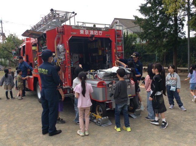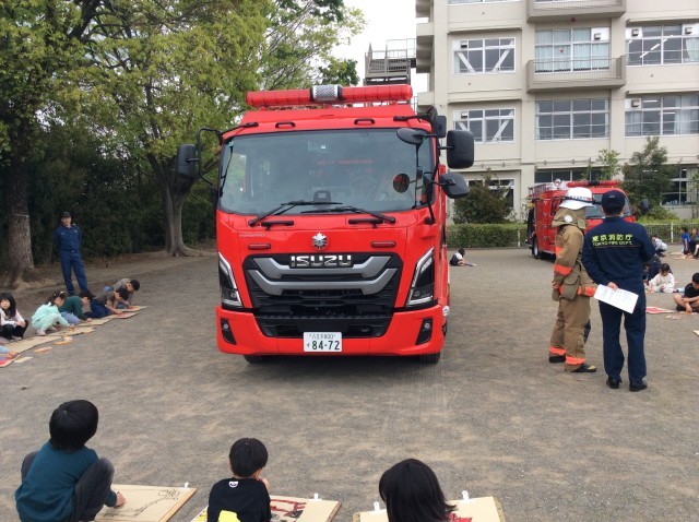消防署の方の話を聞き、消防車を間近で見させてもらいました。