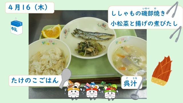 今日は春の旬の食材たけのこを使った「たけのこごはん」です。