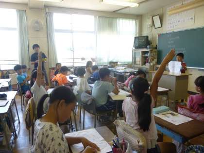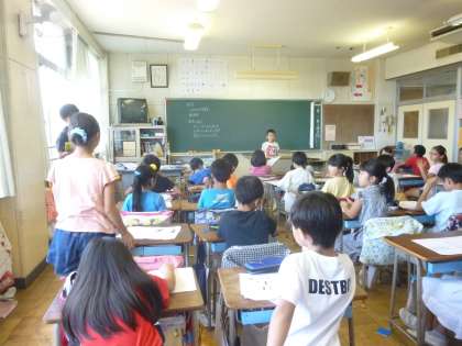 発表した後は、良かったところを伝え合います。内容はもちろん、発表の仕方や声の大きさ、発表を聞いてわかったことなどを評価して伝えることができました。