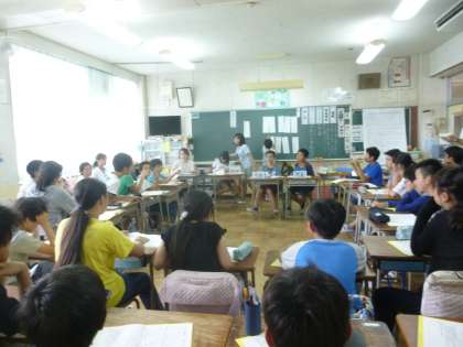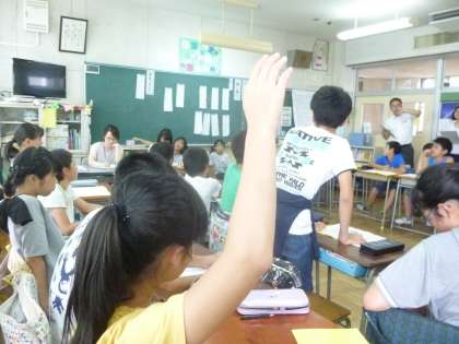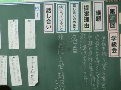 6年生の特別活動では学級会が行われていました。議題は「1学期を振り返ろう集会でみんなが盛り上がり、仲良くなる工夫を考えて決めよう」です。話し合いの形になり、議長を中心に学級会が始まりました。みんなで遊ぶ遊びでは、「仲間に助けてもらったら『ありがとう』と言うと、仲良くなれる」や、「日光の思い出をそれぞれ出し合うと盛り上がると思う」など、仲良く楽しく遊べる工夫について話し合いが進んでいました。ともだちの意見を聞いて、良いところを見付けたり、自分の意見を理由をはっきりさせながら発言したり、議題からそれないよう意識しながら発言したりするなど、6年生らしい発言の仕方があり感心しました。