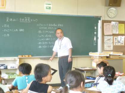 高嶺小では、先生たちの授業力向上の一環として相互授業観察を行っています。今日は校長先生による理科の授業がありました。「夏休みに自由研究をしよう」という題材で、自由研究の進め方について学習しました。