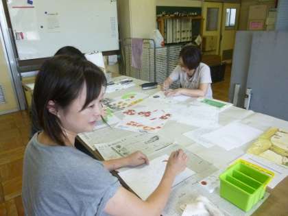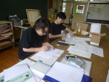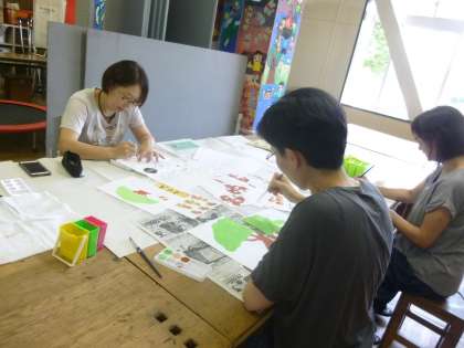 読み聞かせボランティアの皆さんが、パネルシアターづくりをしてくださっています。絵本の絵をパネルシアターの紙に写し取り、色を塗っていきます。出来上がったら子供たちに見せてくださるそうです。出来上がりが楽しみですね。読み聞かせボランティアの皆さん、暑い中ありがとうございます。