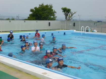 今日の水泳指導では着衣泳を行いました。水着の上からTシャツとズボン、運動靴を身に付けてプールの中に入る体験をしました。洋服や靴が水を含むと体にまとわりついたり重かったりと水の中で動きにくい状況になります。水の中を歩いたりするのも一苦労です。また、水から上がるときも体が重くてなかなか上がれない体験もしました。川遊びをしていておぼれてしまう事故が毎年聞かれますが、水の中で思うように動けない怖さを実感できたようです。