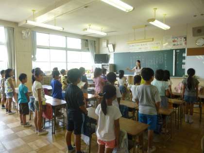 校長先生からの終業式のお話を、教室で静かに聞きました。1学期に頑張ったことや夏休みを充実させるためにどのように過ごせばよいかについてお話がありました。