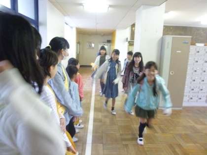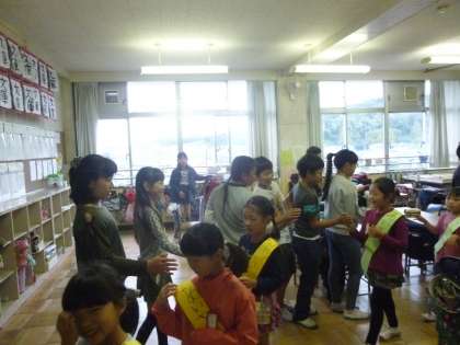 その後は学校中をあいさつして回りました。いろいろな教室で「おはようございます!」と元気に入っていき、友だちとハイタッチ!!