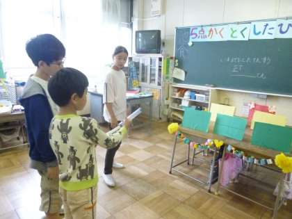 ルール説明をする人、班のリーダーとなって低学年のお世話をする子、そして、ゲームの進行役を務める子、6年生の活躍が光ります!