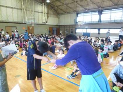 そこでは、ラリーの結果発表がありました。「なかよし賞」に「くすの木ラリーは今日で賞(12日に実施したので、12位のチームに贈られる賞)」「トライ賞(一番たくさんのラリーに参加できたチームに贈られる賞)」など楽しい賞の発表の後は、1位から3位のチームの発表がありました。
