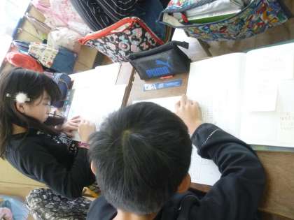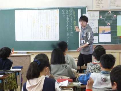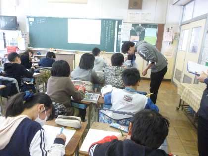 という3点に気を付けながら、文章を書き上げていました。最後は、隣同士で読み合い、感想を伝えながら、さらによりよいものにしていくために、見直しをしていきます。一人一人の個人作業ですが、子供たちは真剣に自分の課題に取り組んでいました。