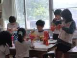 図工の学習で 5年生が紙テープをぐるぐる巻き付けて 優勝カップを創作しています。...