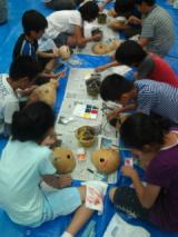 ホテルでふくべ細工体験です。 お気に入りの形を選んで、思い思いの顔を描いています...