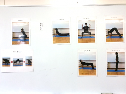 体の柔軟性を高めること、体幹を意識して運動をすることをめあてに、ストレッチや体幹...