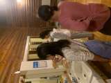 音楽の授業で、3年生、4年生が太鼓の演奏をしました。 これは4年生の練習の様子で...