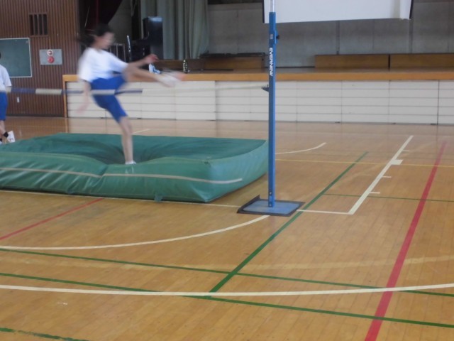 中学部1年では高跳びの授業を行いました。但しステップ、踏切位置、空中動作など一つ一つ確かめて、友達聞こえを掛け合いながら進めて今しあ。飛べたときはみんなの歓声や拍手がありました。