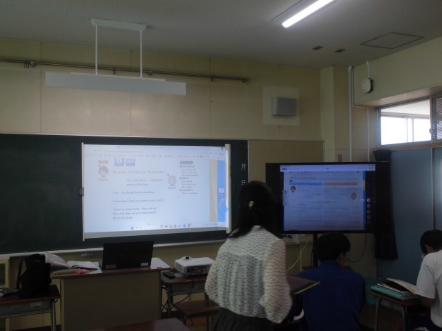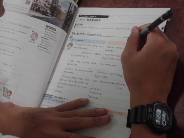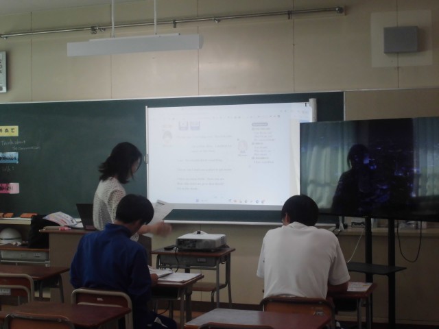 中学部3年生の英語の授業です。ダイアローグ(対話)を学んでいます。英語でやり取りの方法を学ぶことも重要です。適切な応答ができるように練習しています。