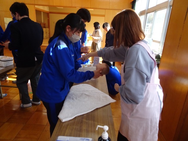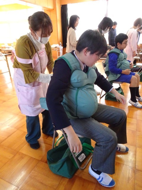 中学部2年生では赤ちゃんふれあい事業で、実際に乳児とその親に来てもらい話を聞きました。また助産師さんにも講義をしてもらったり、妊婦体験や抱っこ体験をしたりしまた。生まれてくるいのちの尊さと愛おしさなどに気付くことができました。