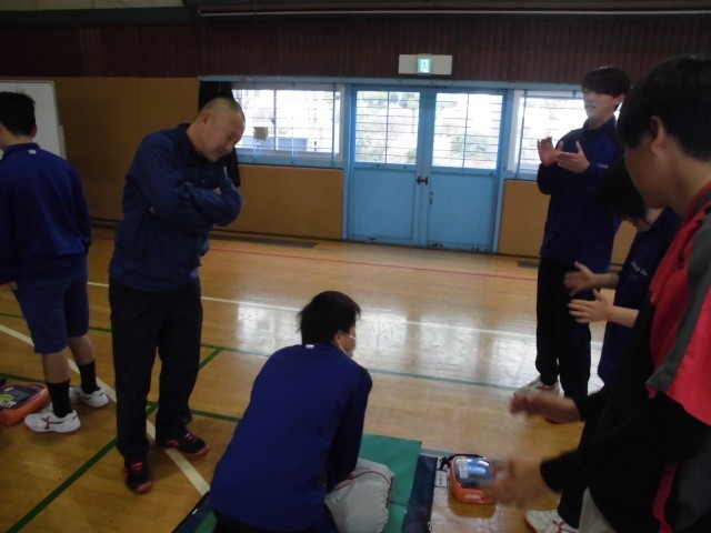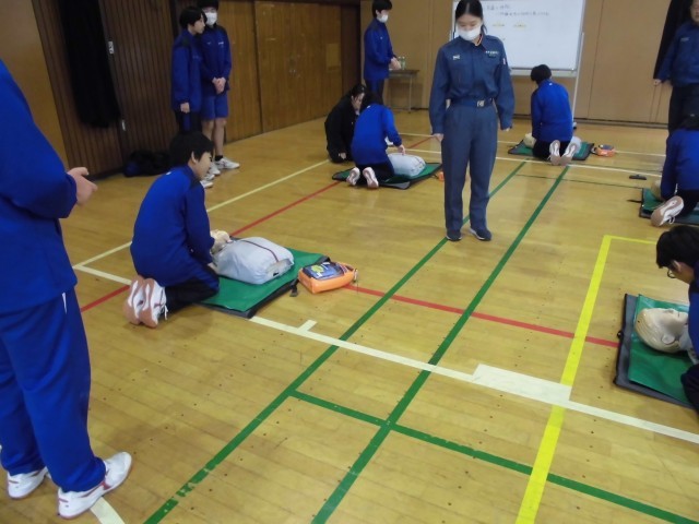 八王子消防署浅川分室から救急救命士さんの指導の下、救急救命講習が行われました。人形を使って心臓マッサージやAEDの使い方などを学びました。講師の先生のお話は楽しく和やかに、救命活動は真剣に行っていました。