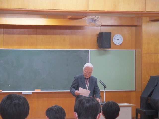 小学部6年生・中学部3年生に戦争体験の語り部さんが来て、八王子空襲のお話をしてくださいました。実際の焼夷弾(ショウイダン)やアメリカ軍からまかれた空襲を伝えるビラなども見ることができました。平和の大事さや命の尊さなど様々なことを考えました。